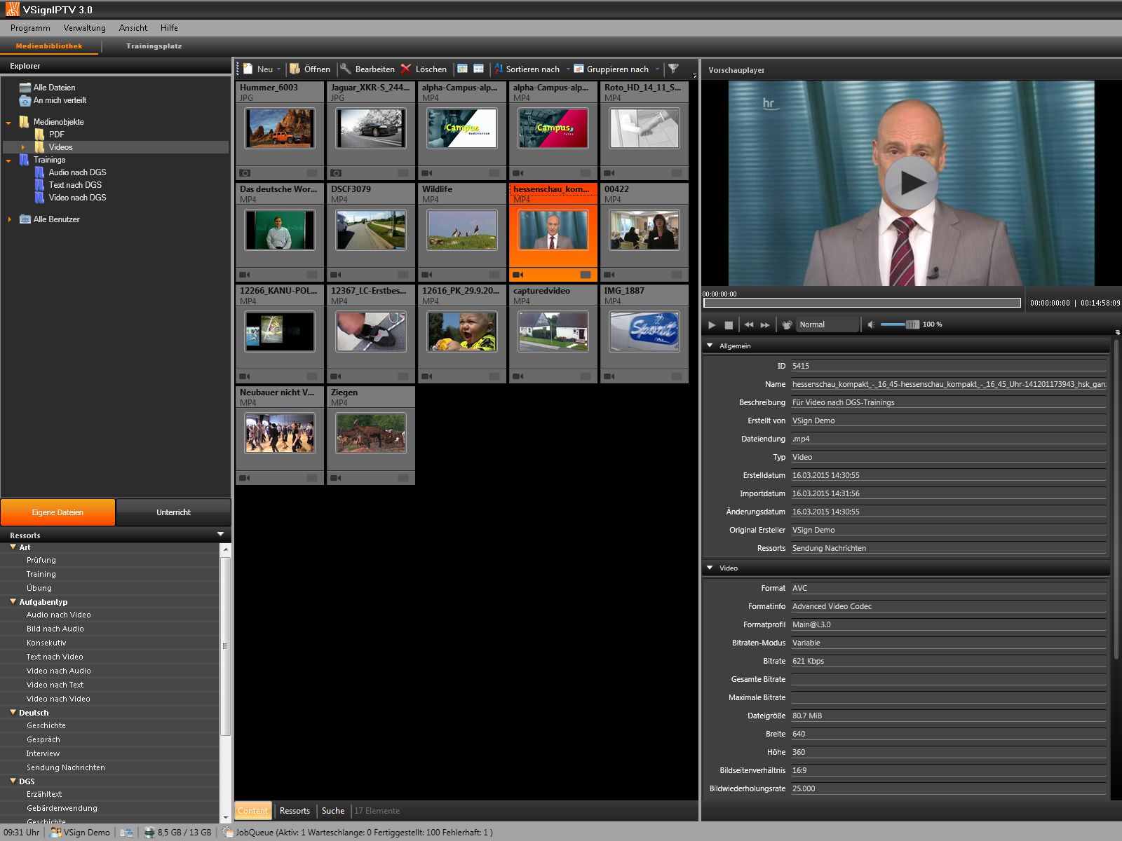VSign ist ein modular gestaltetes Meta Asset Management System mit erweiterten Funktionen und hoher Flexibilität. Neben seiner eigentlichen Aufgabe, dem Entgegennehmen, Verwalten und Ausgeben von Mediendateien in unterschiedlichsten Formaten, stehen außerdem verschiedene Möglichkeiten zur Bearbeitung und Weiterverarbeitung zur Verfügung. Um wiederkehrende Prozesse zu vereinfachen kann, je nach Anforderung, für eine Automatisierung bestimmter Aufgaben gesorgt werden.